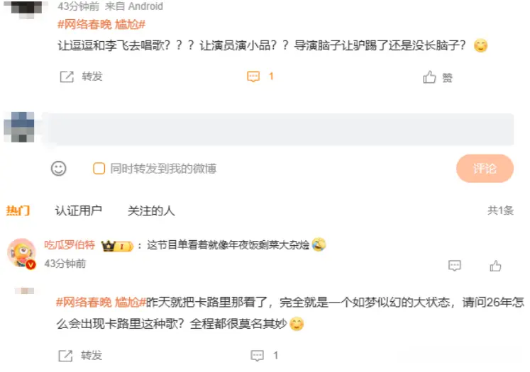 固然春晚还没来,但看此次的网罗春晚,不雅众也对春晚事先失望了一波。