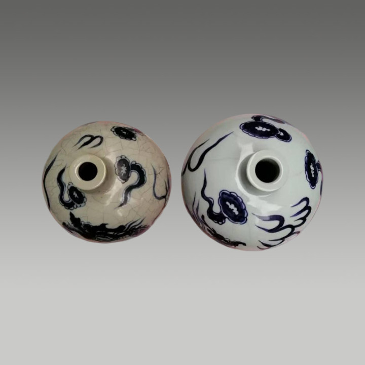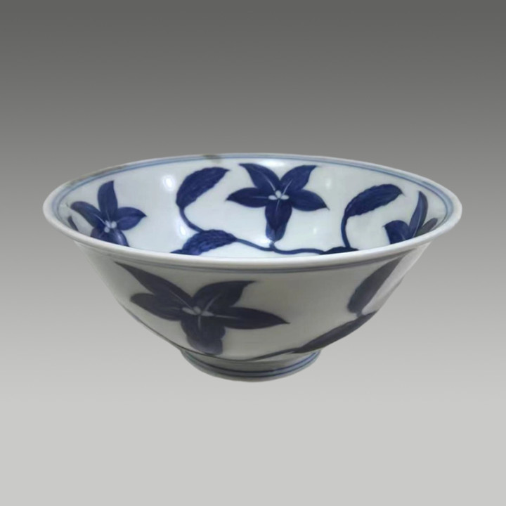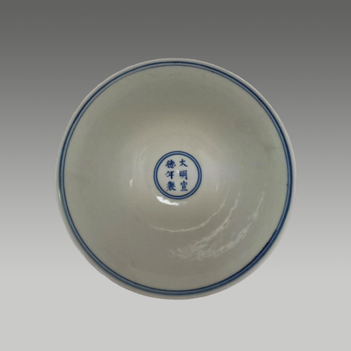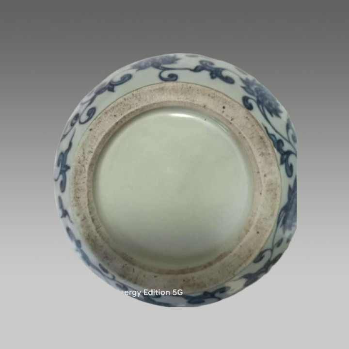青花釉面肥腴莹润,青花神采精雅,线条灵动,图案布局规整,因存世量少量,具有较高的商场价值与保藏价值