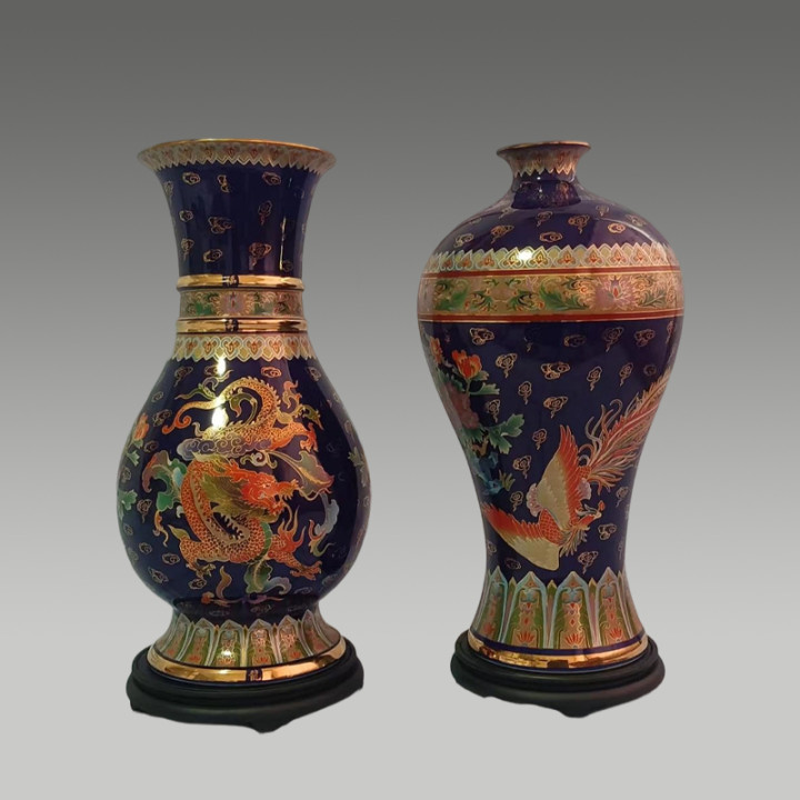 接纳霁蓝釉、搪瓷彩,金丝描金等绝技,举座龙凤呈祥,美丽着婚配完全与国运繁盛