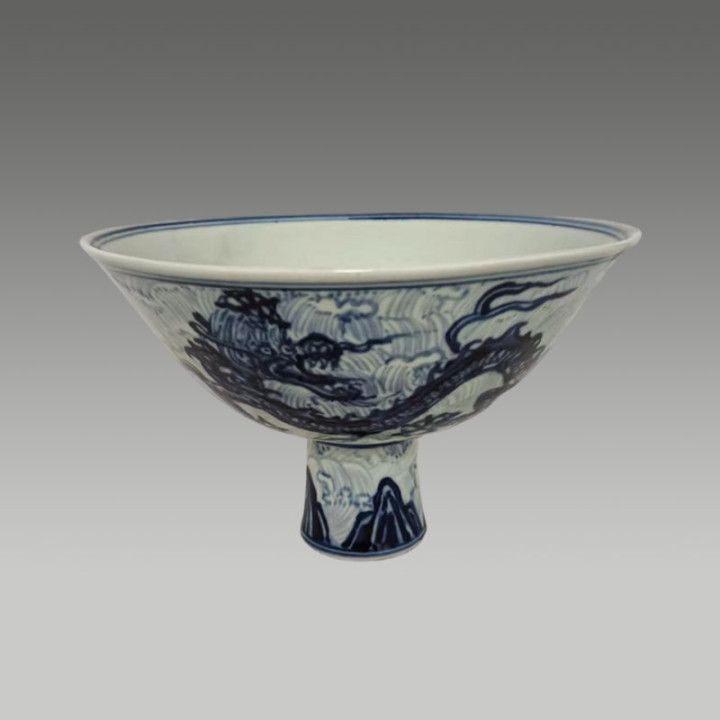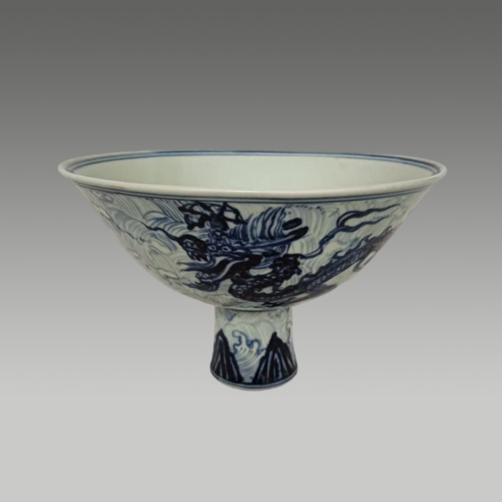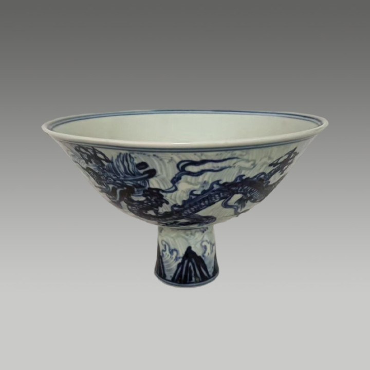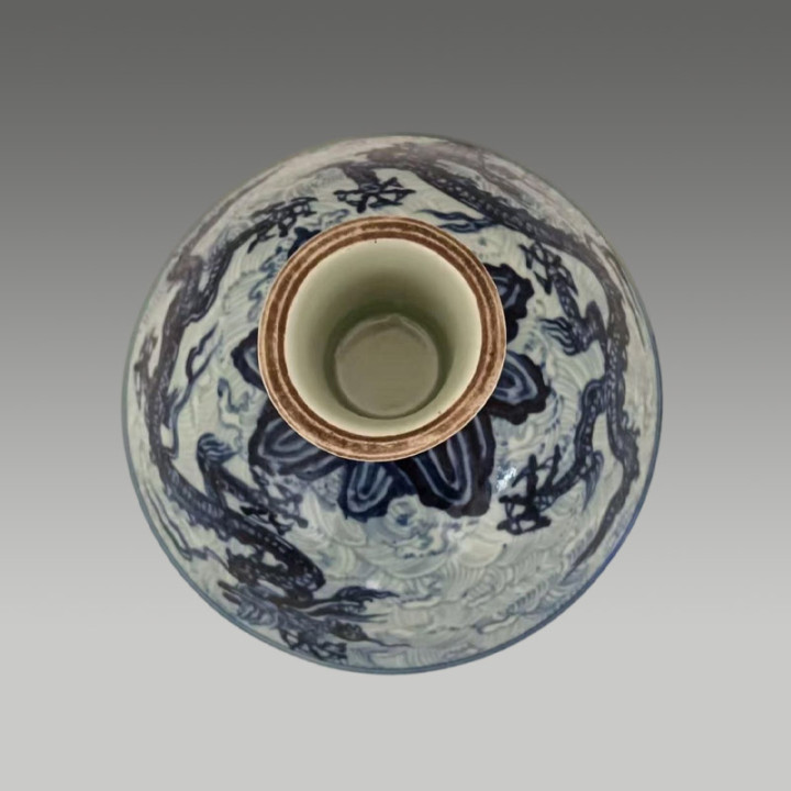 青花绘海水行龙,器型规整,纹饰活泼,存世珍稀,极具保藏与商场价值