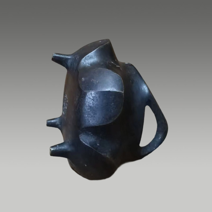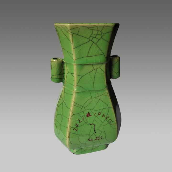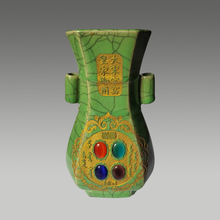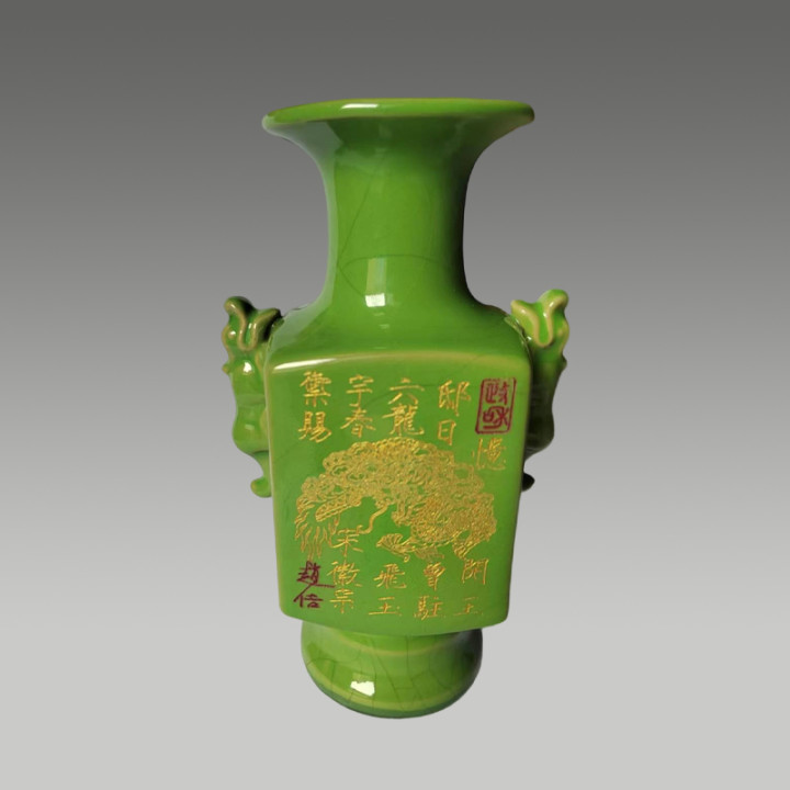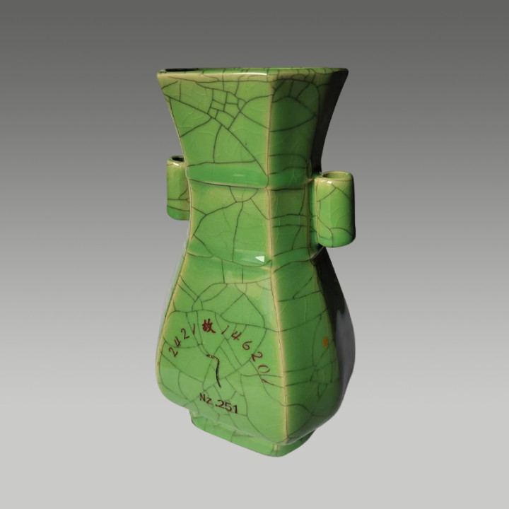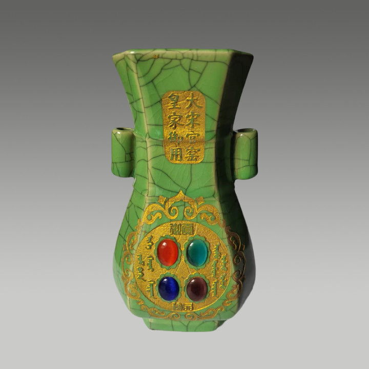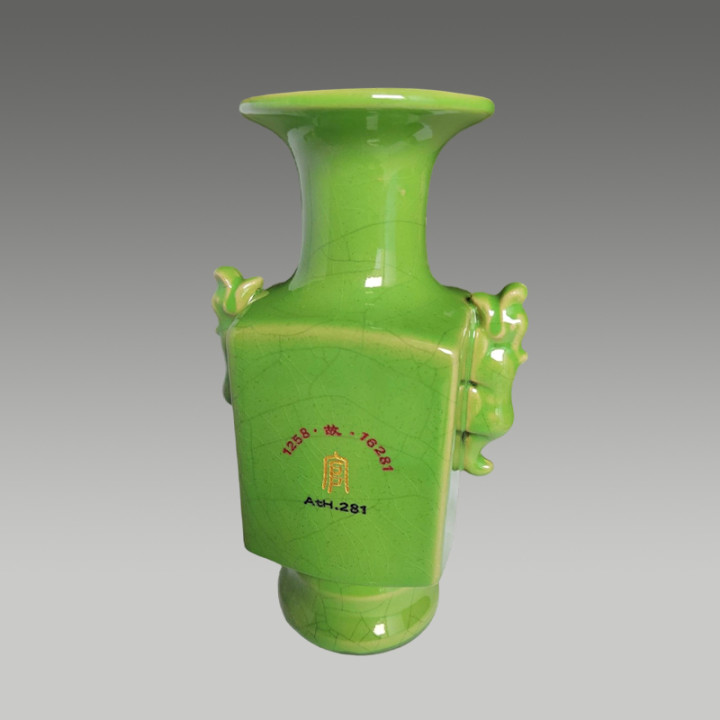 六方贯耳瓶,两侧带有贯耳,举座线条文整,具有很高的商场价值