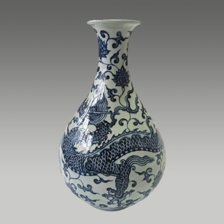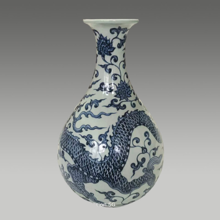 瓶身上的龙纹是皇权的美丽,这类瓷器多为宫廷御用或表彰重臣,存世量少量,代表了那时制瓷业的最高水平