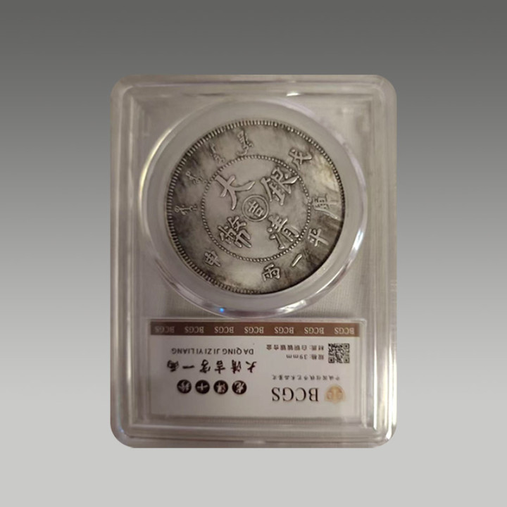 这枚古钱币为评级版,颓唐封装,制造工艺精粹,锈色及包浆当然,因存世量有限,具有一定的商场价值