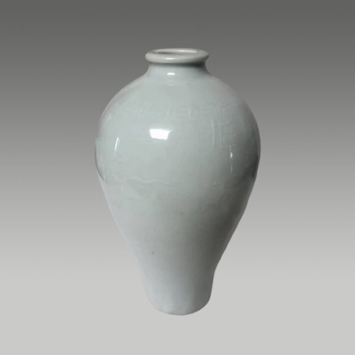 这件瓷器釉色乳白泛青,温润如鹅蛋壳。瓶身暗刻龙纹与“枢府”字样,存世珍稀,极具保藏价值