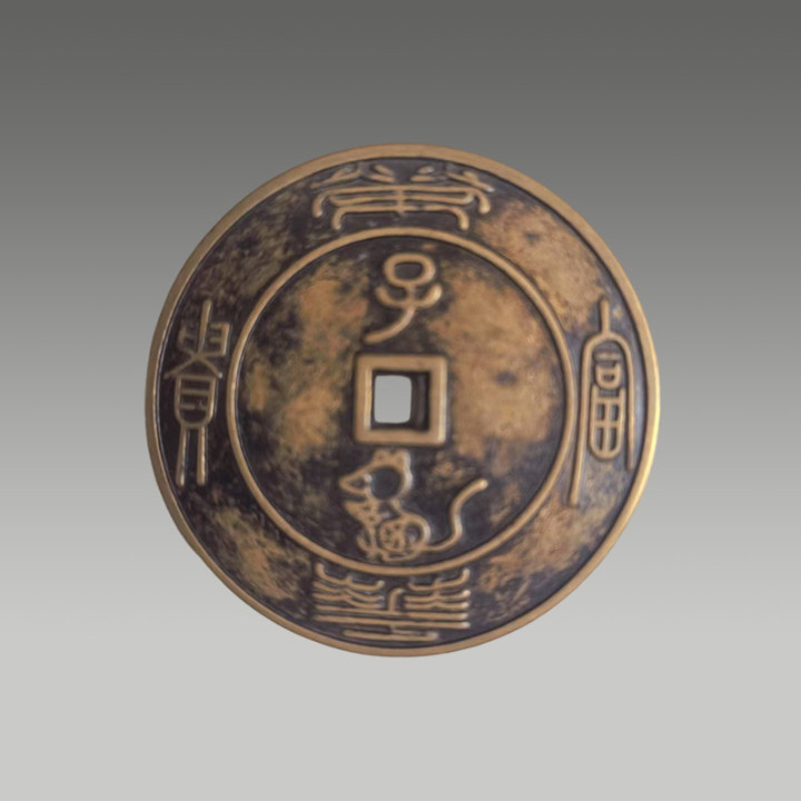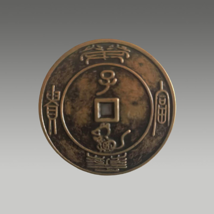 此钱币并非流畅货币,是一枚“子鼠”的生肖钱币,兼具生肖总结与招财纳福的双重寓意,因存世量少量