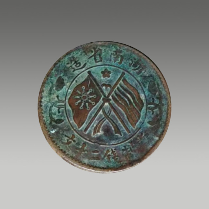 这枚古铜币,包浆丰足品相细腻,正绘双旗、背铸嘉禾,具有很高的保藏价值