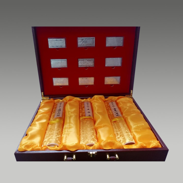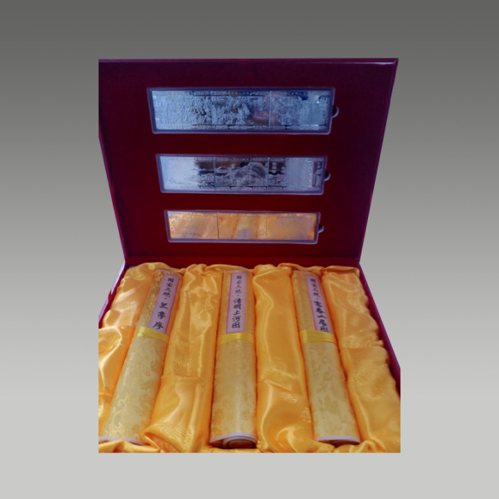 接纳丝绸材质印刷,装裱成卷轴形势,此卷以丝绸复刻其书道神韵,具有很高的商场价值