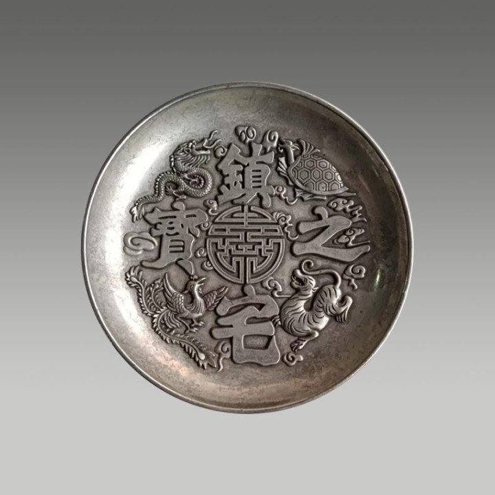 四大神兽镇宅之宝银盘未宫廷用器,纹饰细节明晰,款识规整,存世量少量,具有专有的文化盘考价值