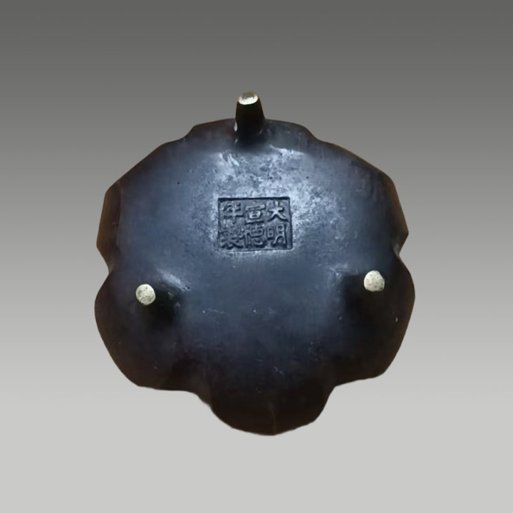 瓣纹匀整,桥耳温婉,三足千里稳,皮色莹润,工艺精妙,保藏价值不俗