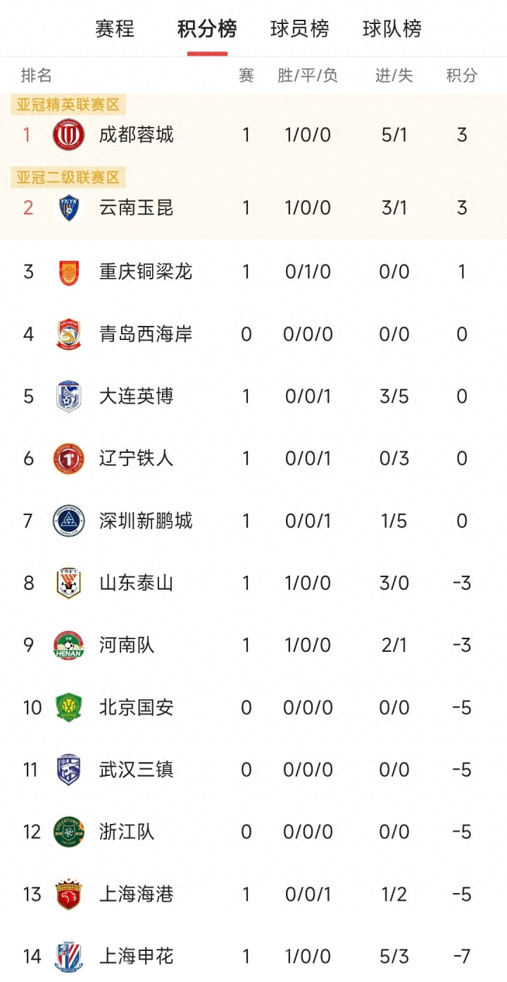 2026赛季中超联赛这才刚拉开大幕,第一轮踢完,积分榜就平直炸了锅,那叫一个刺激!推测好多老球迷看了齐得揉揉眼睛,这哪儿...