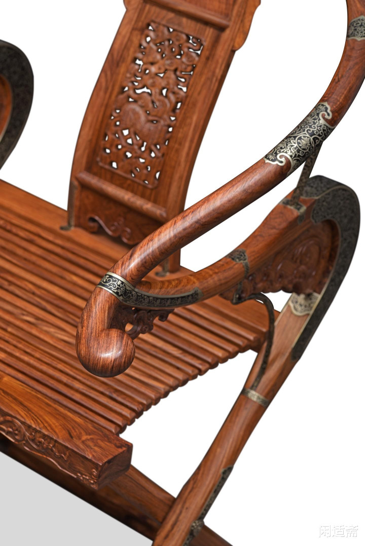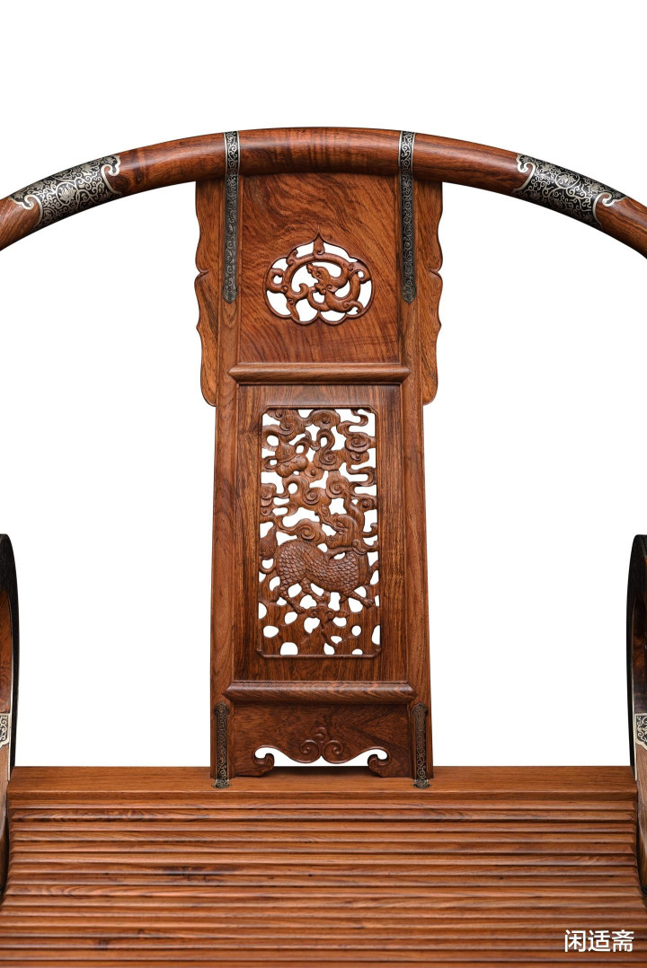 靠背板为整料透雕麒麟纹,凤凰彩票官方网站是整件器物的点睛之笔。工匠以深峻流通的刀法,将麒麟形象描摹得历历如绘——麒麟抬头傲视,身姿壮健,鬃毛倜傥,热情灵动,尽显“仁兽”的祯祥之气。麒麟浑身衬以卷草云气纹,卷草纹源源不时,寓意生生不停、福寿绵绵,与麒麟纹美不可言,既承载“祯祥天降”“军备文德”的好意思好吉意,也彰显了古东说念主对文治武功的生机。
