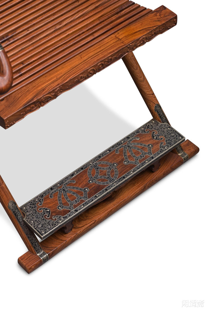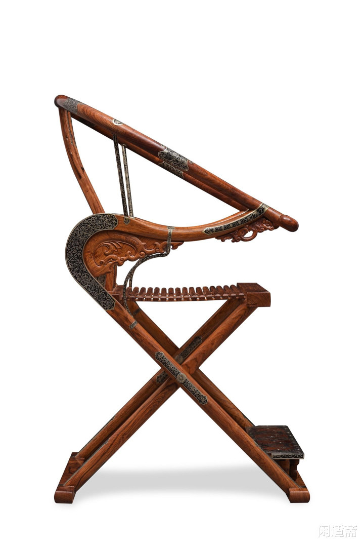 椅身造型挺拔舒展,线条婉转流通,好意思满延续明式产品“勤俭端淑、形神兼备”的精髓。椅身可天真折叠收放,结构小巧繁复,每一处榫卯邻接都严丝合缝,既保留了胡床千年传承的便携特质,更将古东说念主的营造聪敏融入细节,开合之间尽显匠心巧想,兼顾实勤苦能与礼节威仪。