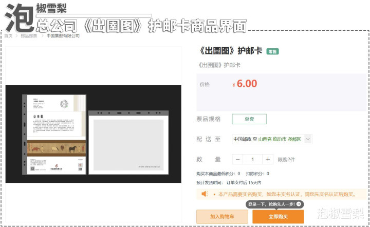 按照总公司的先容,此次护邮卡不错与《出圉图》邮票递送统一购买,且售完之后还会无间补货,是以大致率会在每套邮票刊行后都推出雷同的产物,再在全年邮票刊行动止后制作合订本,用以替代莫得下文的“本票型年册”。